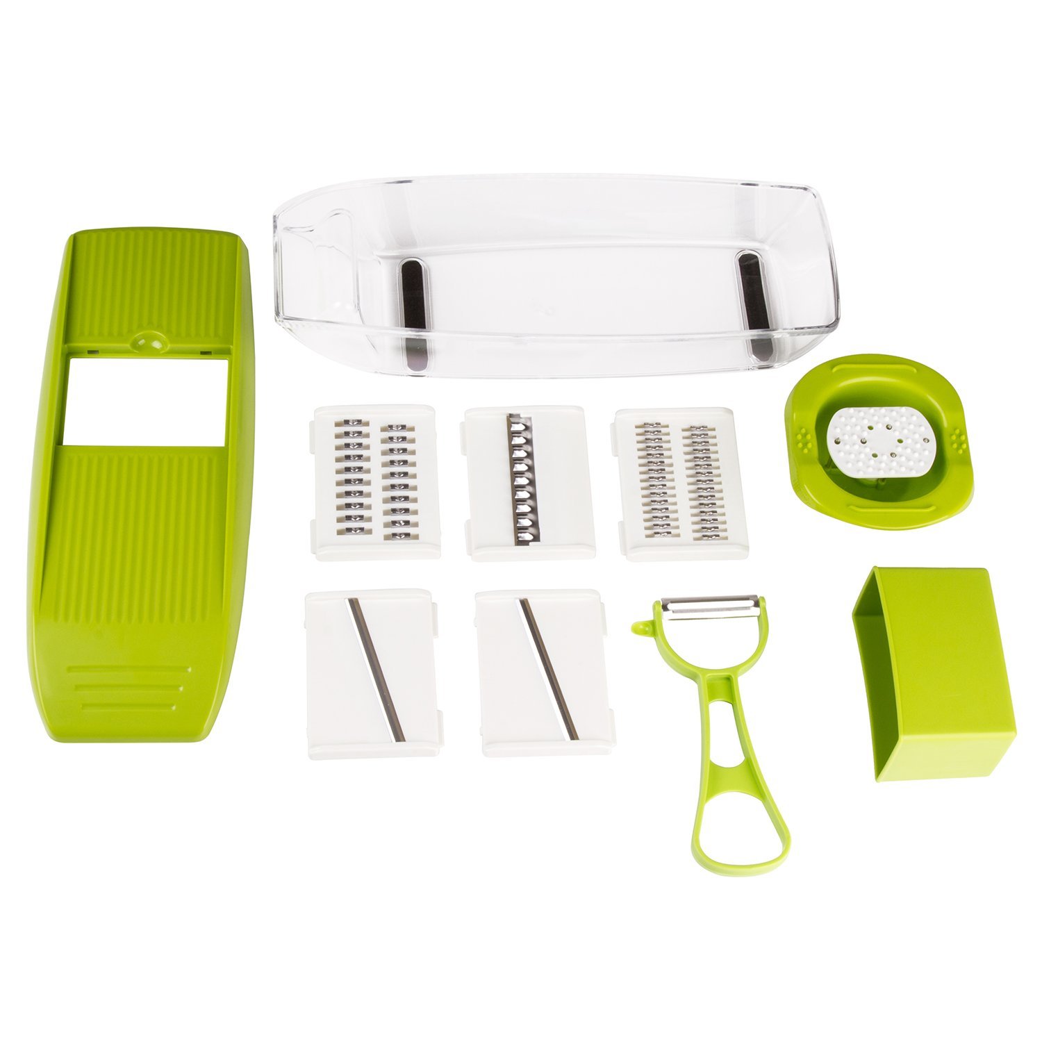 • Der Mandolinen-Allesschneider kommt mit fünf einstellbaren Schnittmöglichkeiten, so können Sie stets die Option wählen, die für das, was auch immer Sie kochen oder zubereiten, passend ist.